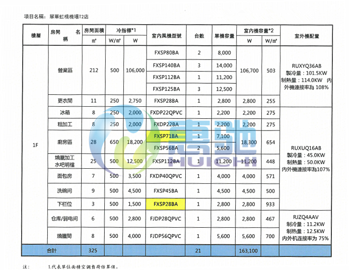 虹橋機場店空調系統技術配置表