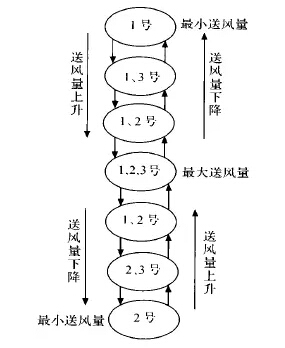 中央空調(diào)節(jié)能改造系統(tǒng)要考慮風機的運行控制方式,即應使每臺風機的運行時間盡量均衡。另外,控制器應簡單有效,設計時能考慮各種特殊情況,具有一定的抗干擾及應變能力。