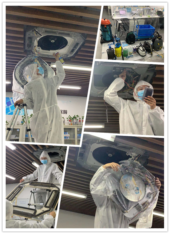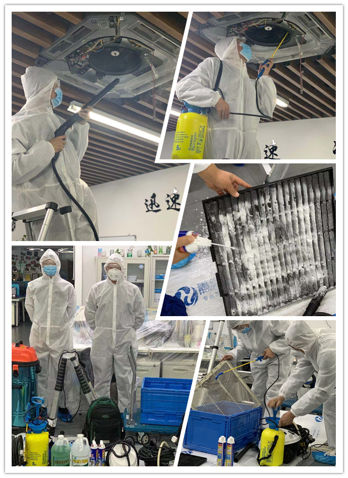 新型冠狀病毒的主要傳播途徑是通過(guò)呼吸道飛沫傳播,當(dāng)帶病毒的飛沫附著在通風(fēng)系統(tǒng)內(nèi)的顆粒物中傳播開來(lái),污染室內(nèi)空氣,就會(huì)大大提高室內(nèi)人員感染病毒的風(fēng)險(xiǎn),導(dǎo)致肺炎疫情加劇。因此對(duì)中央空調(diào)進(jìn)行有效的清洗、消毒迫在眉睫。